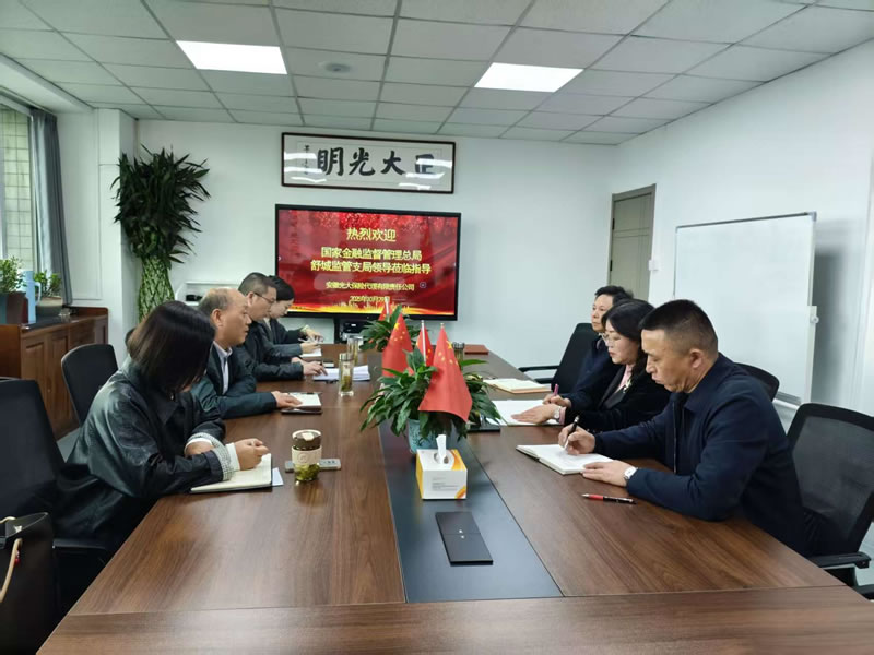 2025年10月29日,国家金融监督管理总局舒城监管支局领导莅临指导安徽光大保险代理有限责任公司。