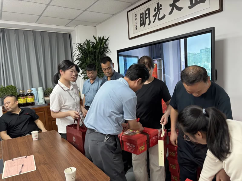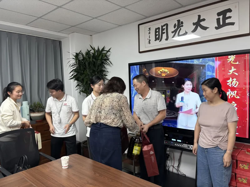 茶话会尾声,余总与祝书记亲手将承载着公司的节日祝福与关怀的中秋礼品送到每位父母的手中。