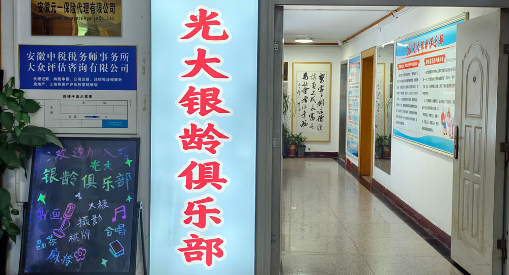 光大银龄俱乐部应势成为本地首家专注退休人群服务的特色空间-以“打造舒城退休人群的幸福聚集地”为初心,规划了覆盖娱乐、社交、休闲的多元区域,致力于填补县域专业银发服务间的空白。